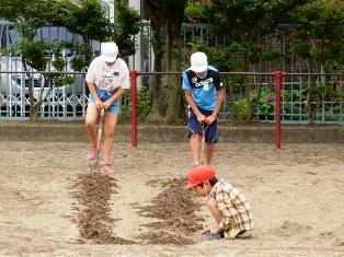 今日も運動委員会の皆さんが砂場の砂を掘り起こしています。