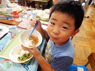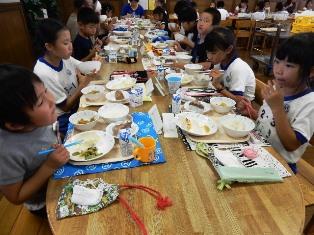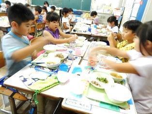 8月生まれの皆さんが一堂に会し仲良く楽しく給食を食べました。