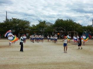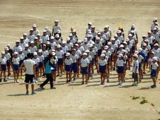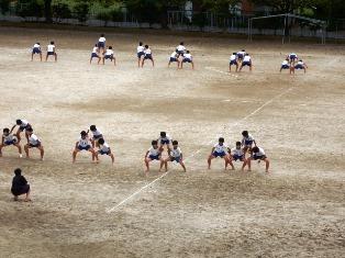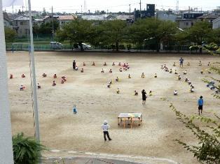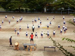 6年生は体育の授業で、校庭で運動会に向けての練習です。