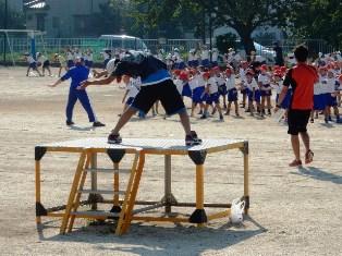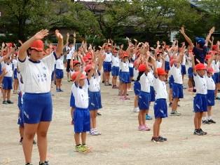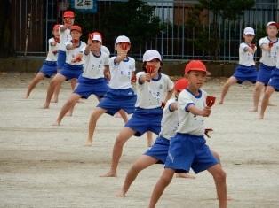 5年生は体育の授業です。運動会に向けて授業が行われています。