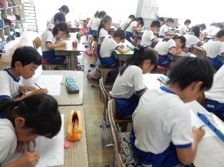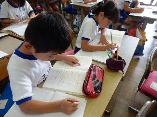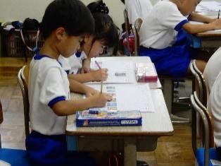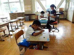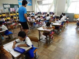 1年生は1学期と夏休みの宿題を含めた復習問題に挑戦中です。