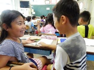 1年生は国語の授業です。「きいてきいてタイム」でお互いに