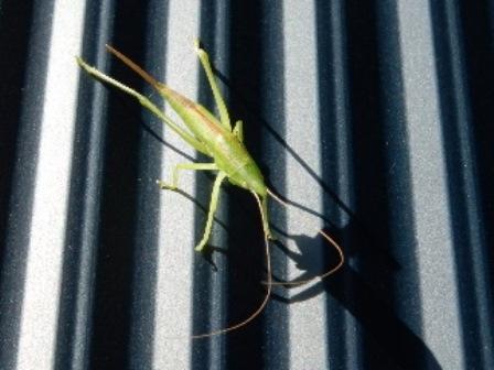 無くして大変そうです。数多くのバッタの仲間が体育館の壁にとまっていました。