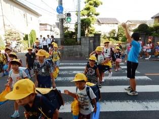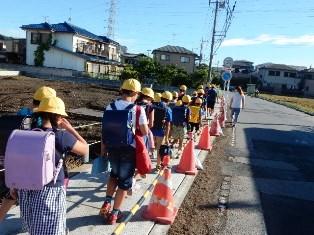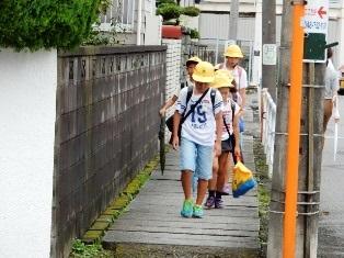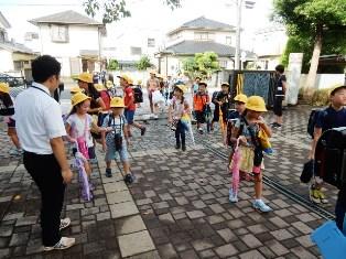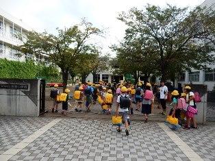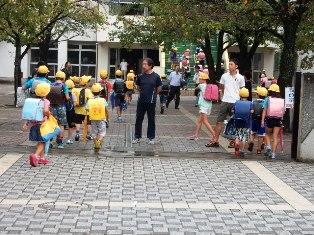 避難訓練の後、班に並び直して、一斉下校を行いました。