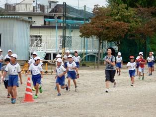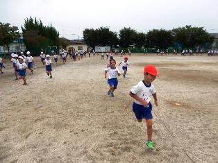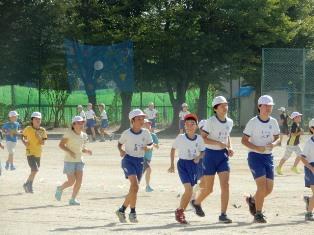 今学期に行われる持久走大会を目標に走っている子どもたちもいます。