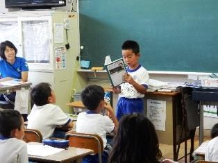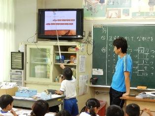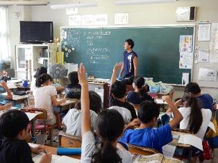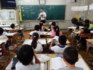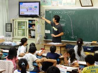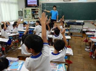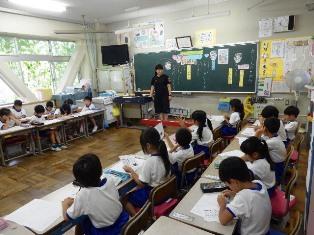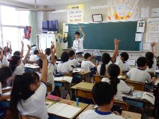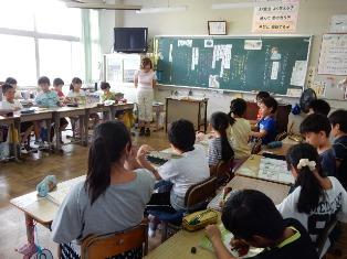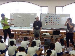 5年生は外国語活動の授業で、担任とALTとJTEの3人の