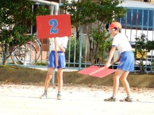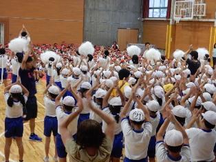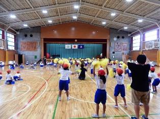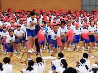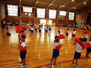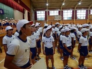 紅白応援合戦の練習です。声が大きくなり揃ってきました。