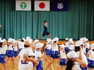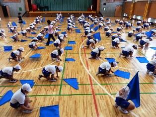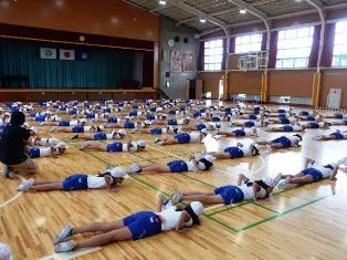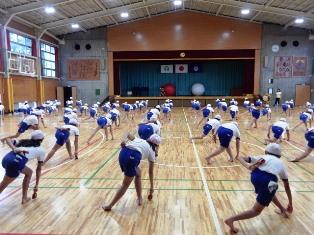 今日も朝マラソンの音楽に代えてラジオ体操を行いました。