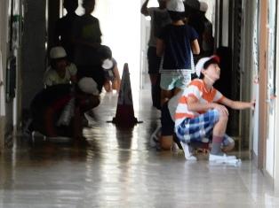 大地震あり 校舎壁が壊れ 職員は校庭に逃れ 幸いにして