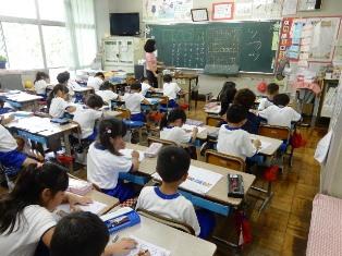 3年生は国語で、ローマ字をパソコンで学習しています。