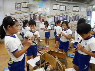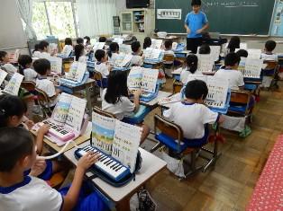 1年生の音楽の授業です。鍵盤ハーモニカを演奏しています。