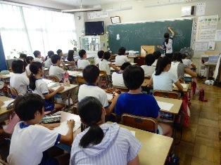 4年生は理科の授業で、夏休み中に研究したことをクラスで