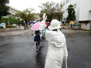朝から雨で時折強く降りましたが、お陰様で、事故なく登校