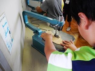 5年生は図工の授業で、「糸のこドライブ」糸のこで板を切って