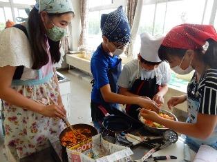 6年生は家庭科の授業で、調理実習です。