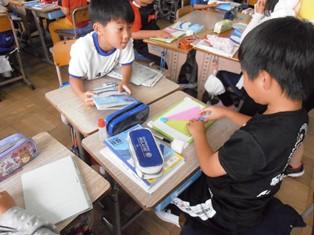 2年生は国語の授業で、漢字の広場、絵の中の言葉を使って