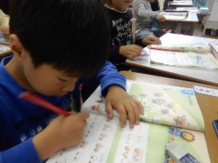 1年生は国語の授業で、ひらがなの学習です。