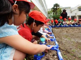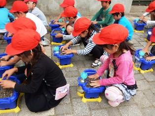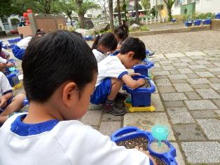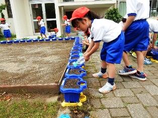 しています。なにしているの?と聞くと、アサガオの種を植える
