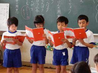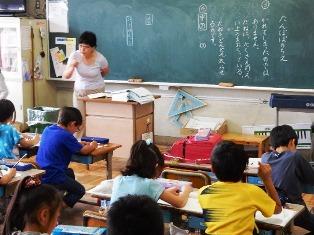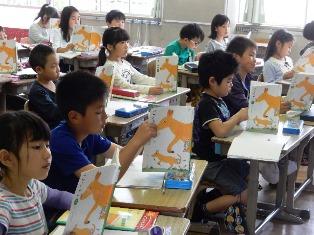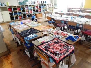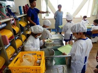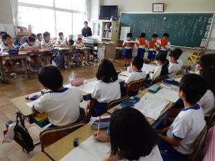 4時間目に覗いた5年生の教室です。すでに、給食の準備が