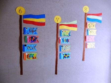 678組の掲示板です。授業で制作した鯉のぼりが元気に泳いでいます。