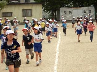連休後の朝マラソンですが、子どもたちは元気に走っています。