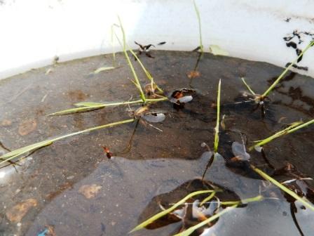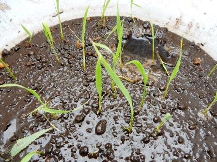 先日芽を出したモミを植え付けました。今日は、針のような細さの苗が育っています。