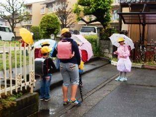 傘をさそうか迷うほどの霧雨が降っていました。子どもたちの