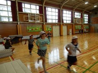 でも、体育館を覗いてみると外周を走っている子どもたちが