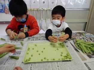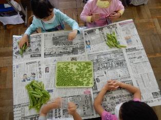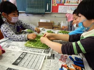 先生からのお話をよく聞いて、丁寧にさやをむいていました。