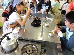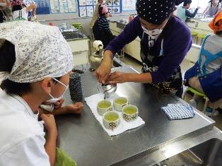 5年生は家庭科の授業で、お茶を入れています。きれいな