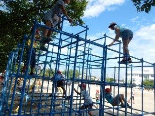 桜の木陰になるジャングルジム。ひなたに比べるととても涼しいです。