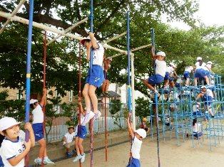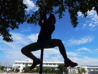 のぼり棒に昇る3年生です。あっという間にてっぺんに到着です。