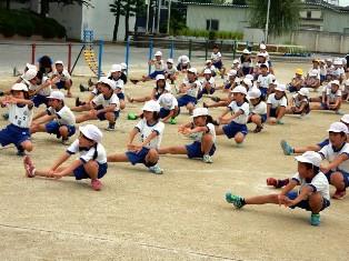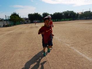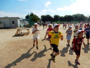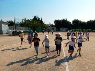 日射しが照りつけていますが、子どもたちは負けずに走っています。