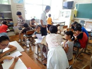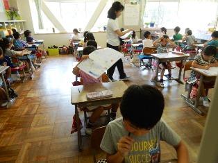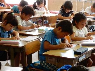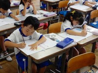 1年生は国語で、書写の授業です。お手本を見ながら真剣に