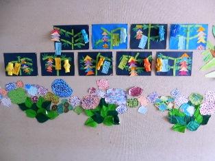 あじさいの上には、七夕飾りと願いを込めた短冊が一緒に