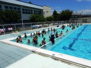 4年生は体育で、水泳学習です。今日もプールには適した気温です。