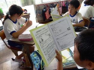 5年生は国語で、「活動報告書を作ろう」の授業です。