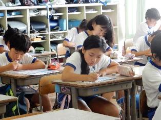 6年生は理科の授業で、これまでの学習のまとめテストをしています。