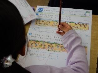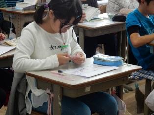 4年生は算数の授業で、テストをしています。文章題もよく読んで、