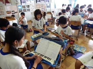 4年生は音楽の授業で、リコーダーの練習です。今日は、