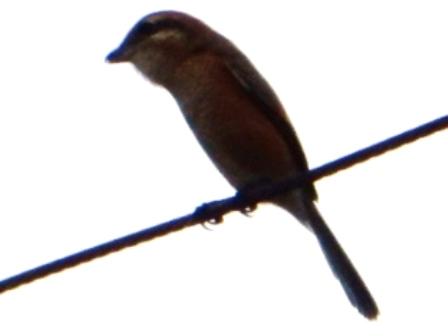 電線にとまって、甲高く鋭い声で鳴いているのはモズのようです。