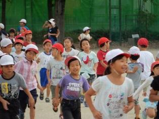 今日も朝マラソンに取り組む子どもたちです。昨日の校外学習の