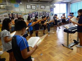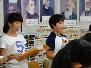 5年生は音楽の授業です。綺麗な歌声が音楽室に響いています。