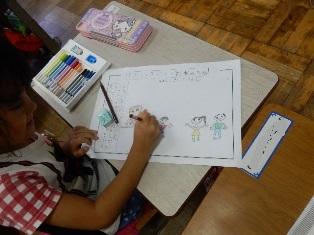 1年生は、昨日の大宮公園への校外学習を絵日記にしています。