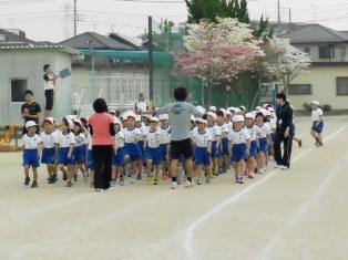今日のさわやかタイムは、運動会の練習もかねて、「前へならえ」「回れ右」や行進の