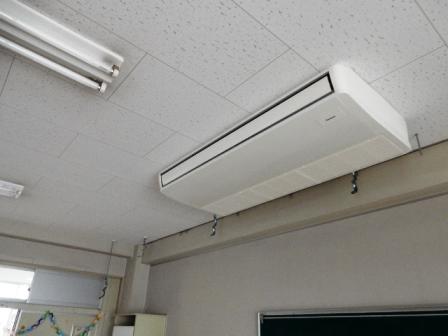 子どもたちの使う全ての普通教室にエアコンの室内機が設置されました。