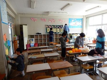 移動などを行っていました。廊下もきれいになり、飾り付けで教室も華やかになりました。