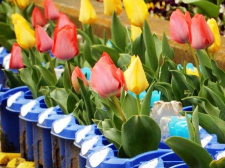 1年生が植え付けたチューリップの球根。今、たくさんの花が咲いています。