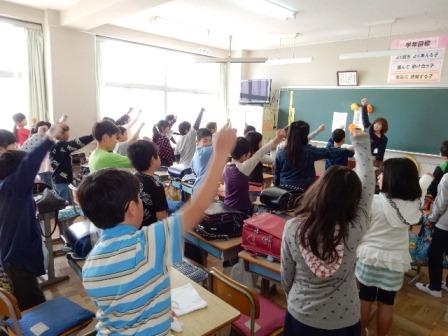 4年生のクラスでは、担任の先生と子どもたちがかけ声を上げながら全員で1年間の
