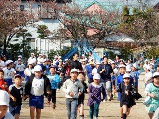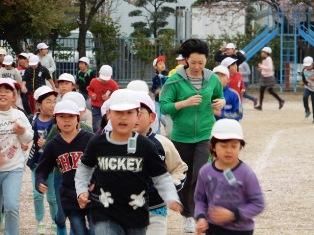 先生方も一緒に走っています。役割分担で、教室の子どもたちを